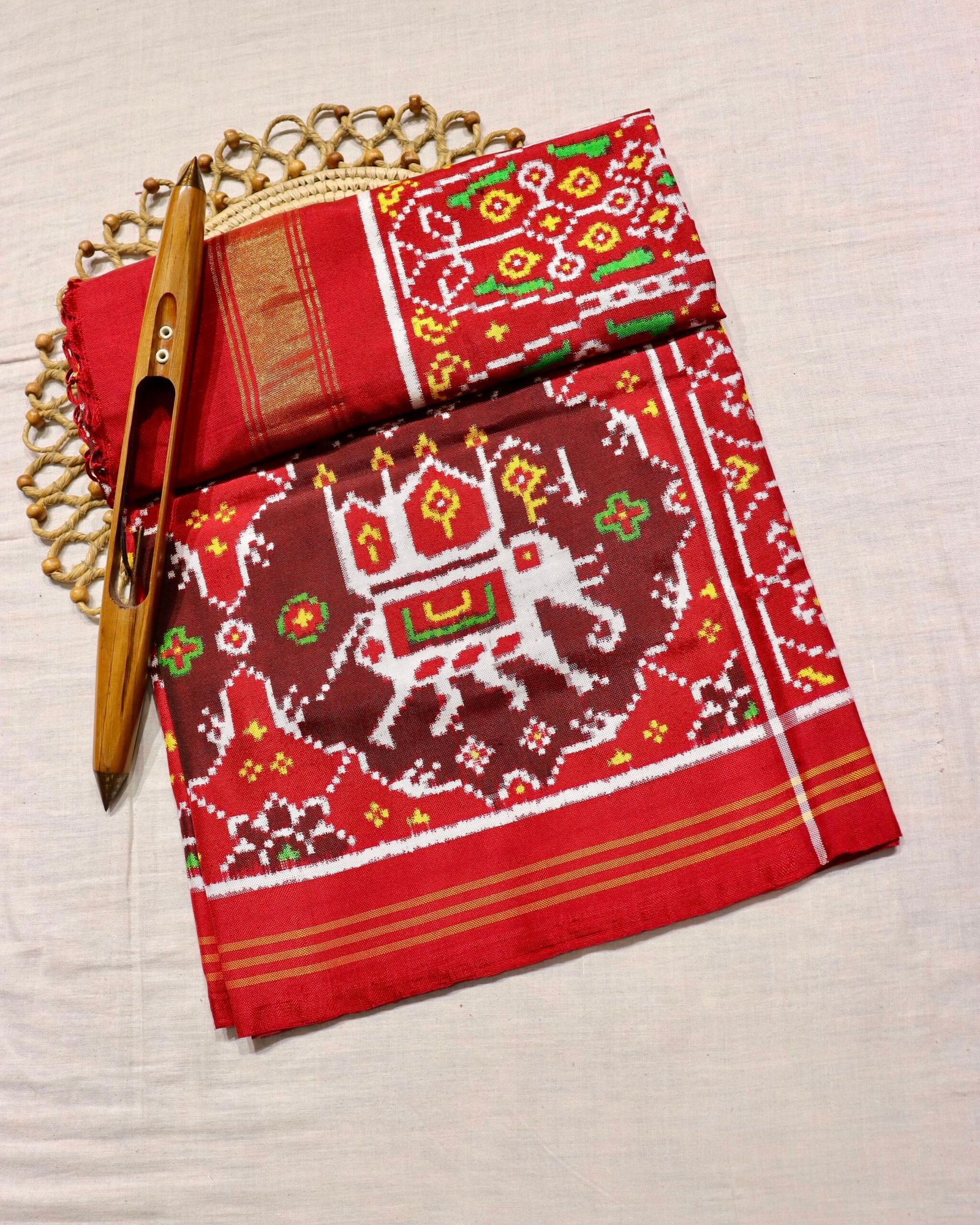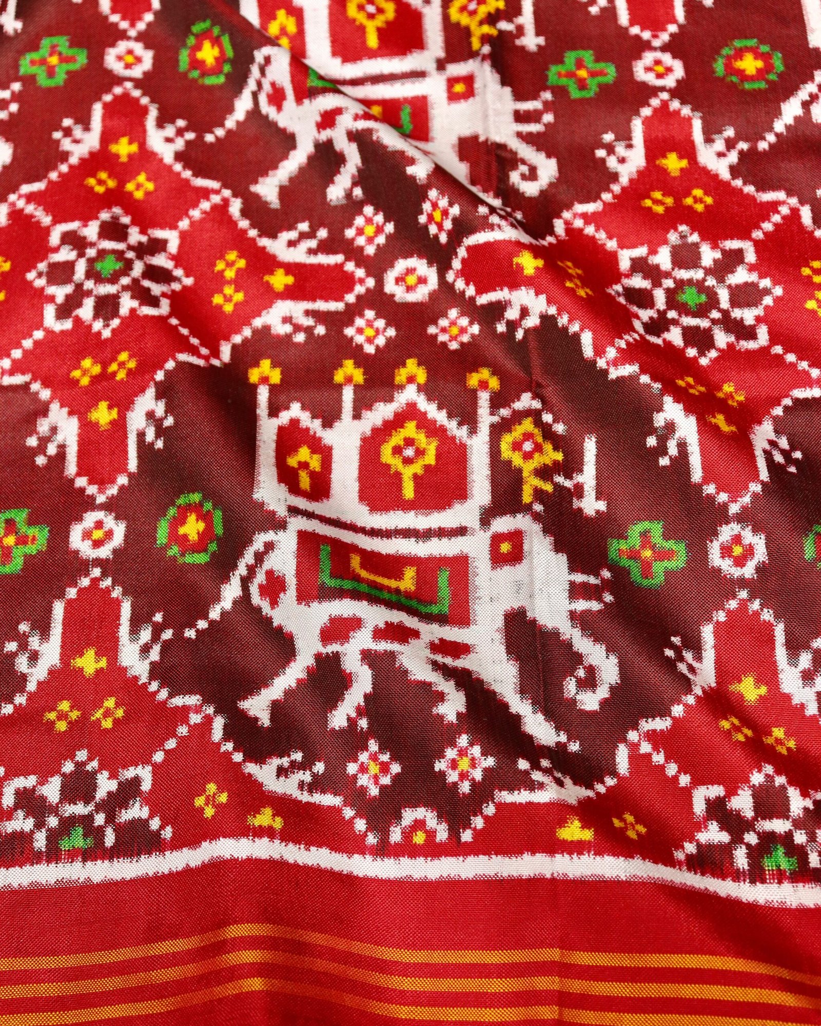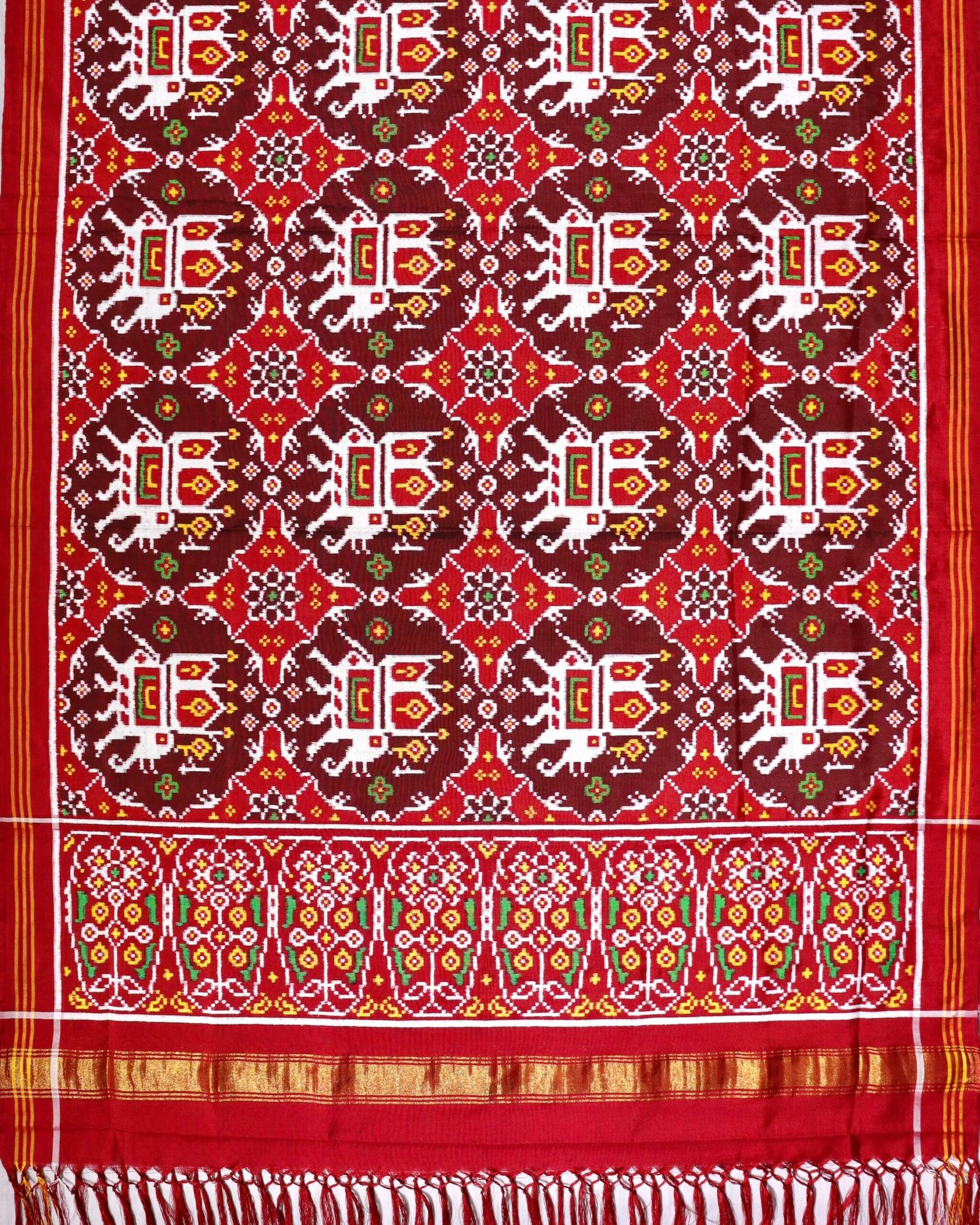 Home Shop Patola Dupatta Double Ikat Dupatta Maroon-red Elephant chhabdi Patola Dupatta